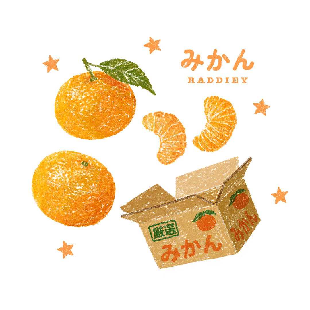 2026年作成のみかんのイラストは、こんな感じにしあがりました。 いろいろ素材を用意しました。