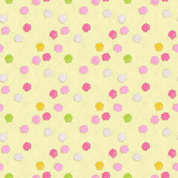 コロコロと小さな色とりどりのこんぺいとうを転がした、見た目も楽しいデザインのテキスタイルです。濃いピンクに薄いピンク、白もあるよ。リアルタッチだから出せる個性的なテキスタイルデザインです。こちらはイエローバージョンになります。こちらの柄の生地は無料型紙と生地の通販サイトnunocoto fabricさんで発売中です。ぜひnunocoto fabricさんのページもご覧ください。