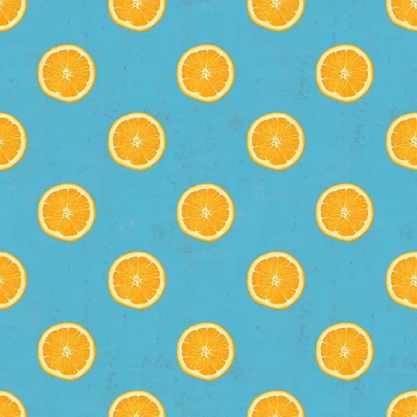輪切りのオレンジがたくさん。でもよく見るとかなりリアルに描いてあります。個性的で印象に残るカラーのテキスタイルデザインです。ありそうでなかった輪切りがいい感じ。ジューシーな感じを丁寧に描写しました。こちらはセルリアンブルーです。 こちらの柄の生地は無料型紙と生地の通販サイトnunocoto fabricさんで発売中です。ぜひnunocoto fabricさんのページもご覧ください。