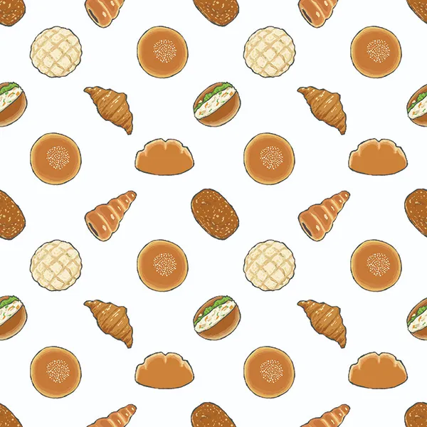 いろんな種類のパンがたくさん。あんぱんにチョココロネ、メロンパンなどなど。パンそれぞれの特徴をしっかり捉えて描写した見ていて楽しくなるデザインです。こちらの商品の詳細はnunocoto fabricさんのホームページをご覧ください。