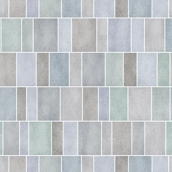 おうちの外壁のような色彩と質感のテキスタイルです。線と平面でいろいろな色彩を感じられるデザインです。幾何学的な形ですが、どこか透明感もあっていい雰囲気に仕上がっています。こちらは寒色系のCoolです。