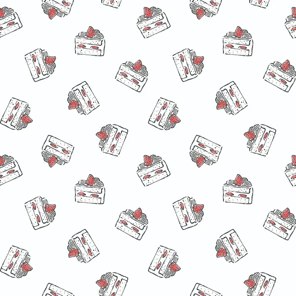 ケーキの定番、ストロベリーショートケーキをモチーフにしたデザインです。ダークグレーのドローイングで仕上げて、いちごの部分はマーカーのような赤をワンポイントで。