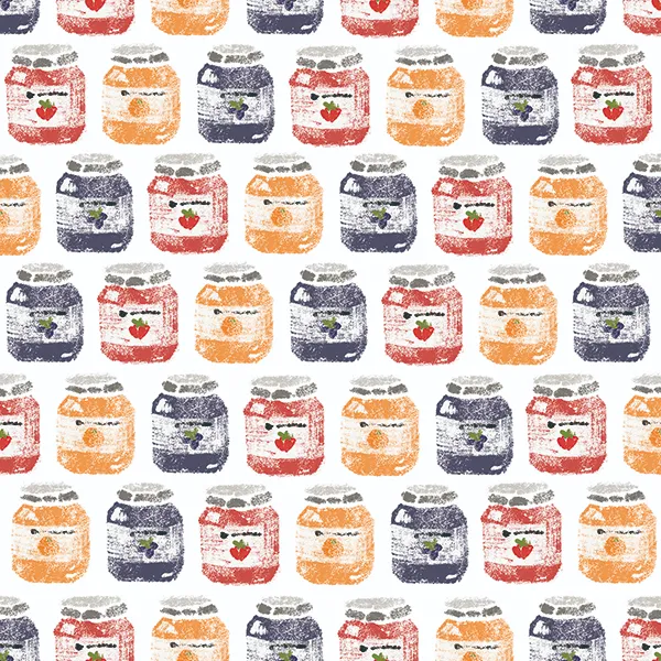 ざらっとしたブラシで荒く落書きのように仕上げた、ジャムのデザインです。いちご、マーマレード、ブルーベリーのジャムがモチーフです。
