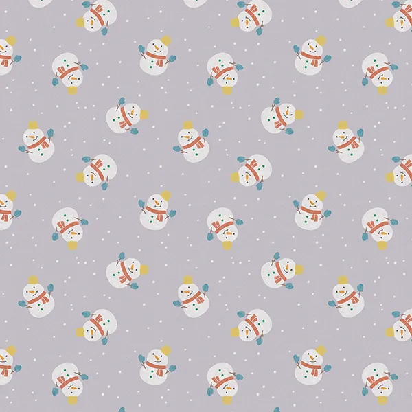 寒い雪の降る季節にちょうどよい、落ち着いたカラーの雪だるま柄です。全体に雪を散りばめてデザインしました。