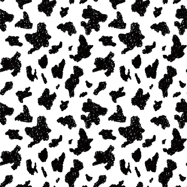アニマル柄のウシの模様がモチーフのテキスタイルデザインです。黒と白のコントラストが良い雰囲気です。