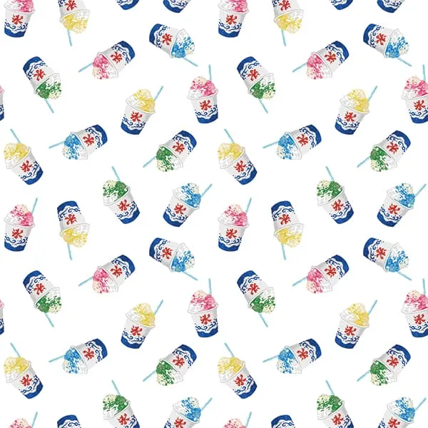 このカップも良い感じ。いろんな味のかき氷が柄生地になりました。暑い夏におすすめです。